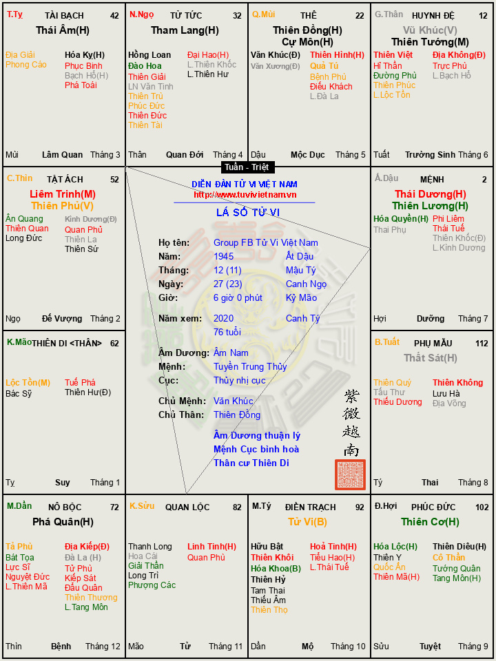 1) Lá số Tử Vi